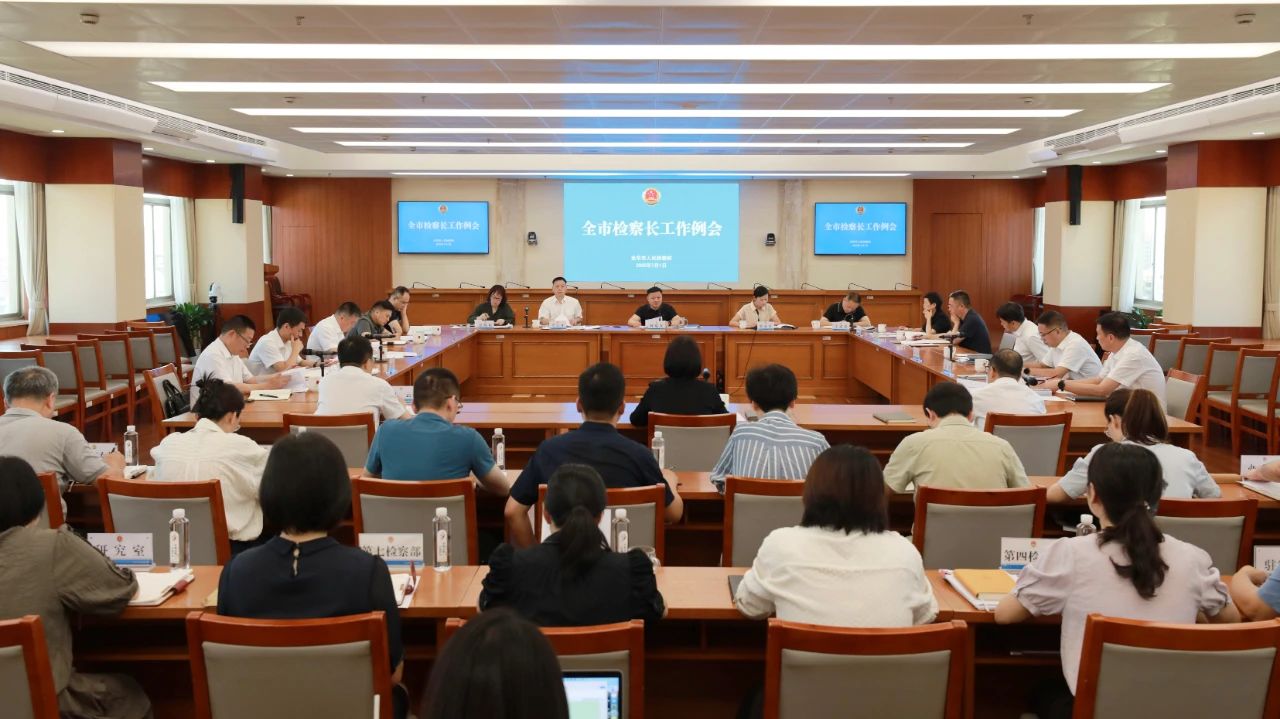 7月1日上午,金华市人民检察院召开全市检察长工作例会,传达学习全省政法领导干部专题研讨班、全省市院检察长座谈会、全省检察机关违规异地执法和趋利性执法司法专项监督工作推进会精神,围绕省检察院林贻影检察长部署的重点工作,听取党风廉政、意识形态、信访工作“三张清单”落实情况,分析研判上半年业务质效,研究贯彻落实举措。市检察院党组书记、检察长钟瑞友主持会议并讲话,市检察院领导班子成员、检委会专职委员、各基层院检察长、各部门主要负责人参加会议。